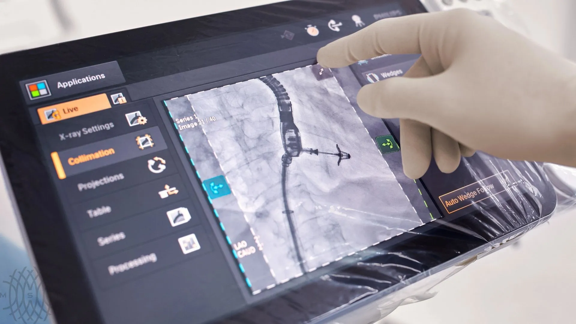 Штатив FlexArm также позволяет улучшить процесс управления функциями системы Azurion прямо у стола при помощи интуитивно понятного контроллера Axsys; благодаря ему выполнение процедур осуществляется просто и естественно. При наличии изменений или осложнений врач может быстро и легко принять необходимые меры. Также имеется возможность снизить необходимость для врачей и другого персонала входить и выходить из стерильной зоны во время процедуры;