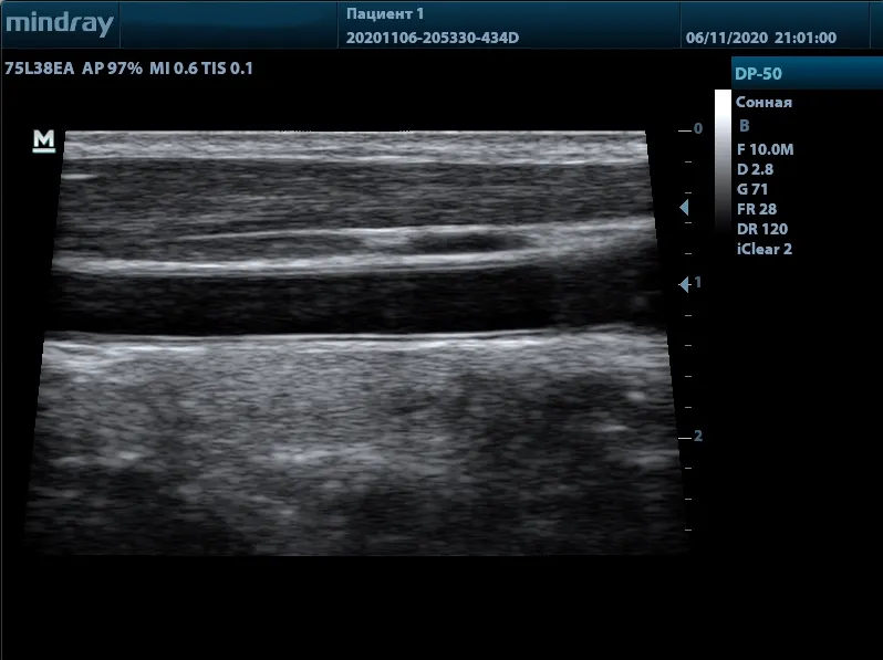 Автоматическое измерение толщины передней и задней стенки, предоставляющее точную информацию о состоянии сонной артерии.
