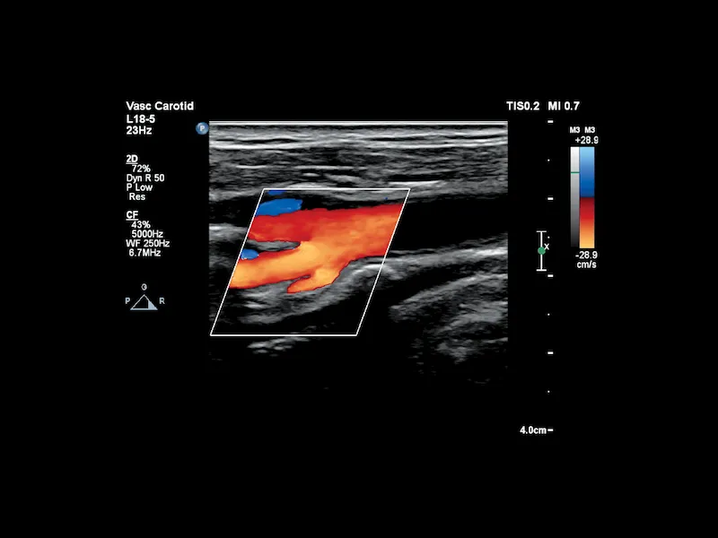 - Функция Auto Doppler сокращает количество шагов размещения цветового окна и контрольного объема до трех, а также уменьшает количество повторных нажатий на клавиши в среднем на 67,9%.