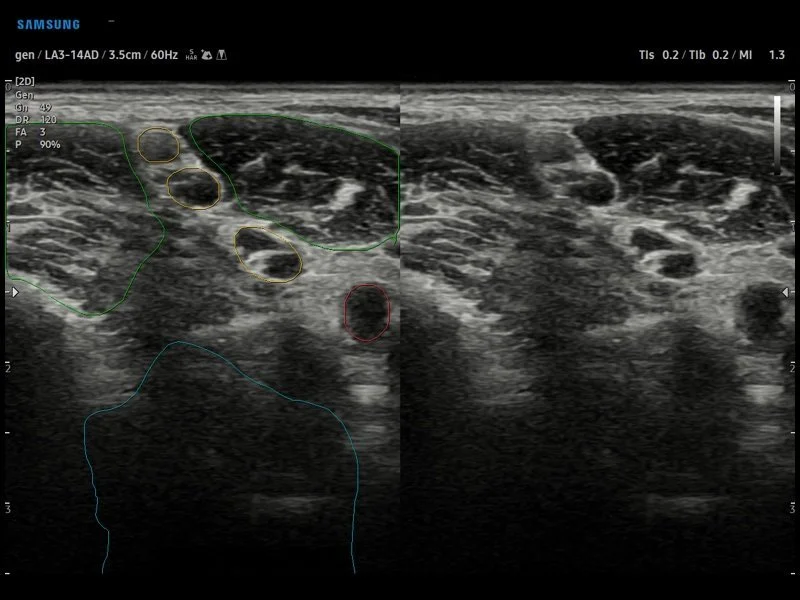 Режим Sono elastography: Используется для оценки жесткости тканей, что особенно полезно при диагностике опухолей и фиброзных изменений.